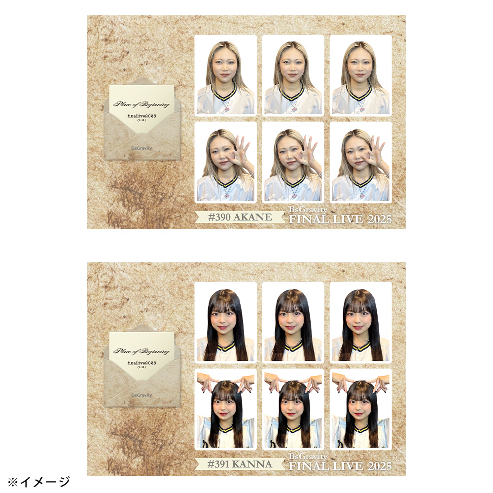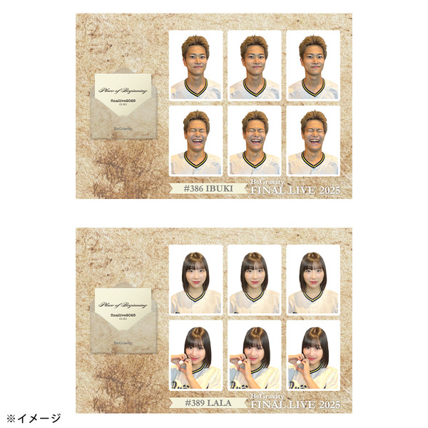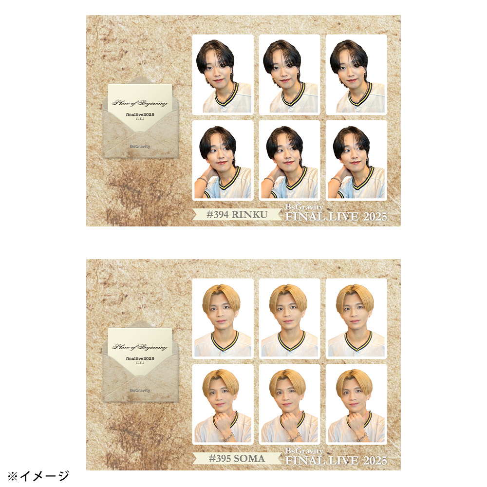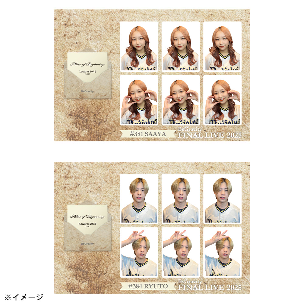 1月11日に開催された「BsGravity2025 FINAL LIVE〜Place of Beginning〜」グッズの証明写真風ステッカーです。