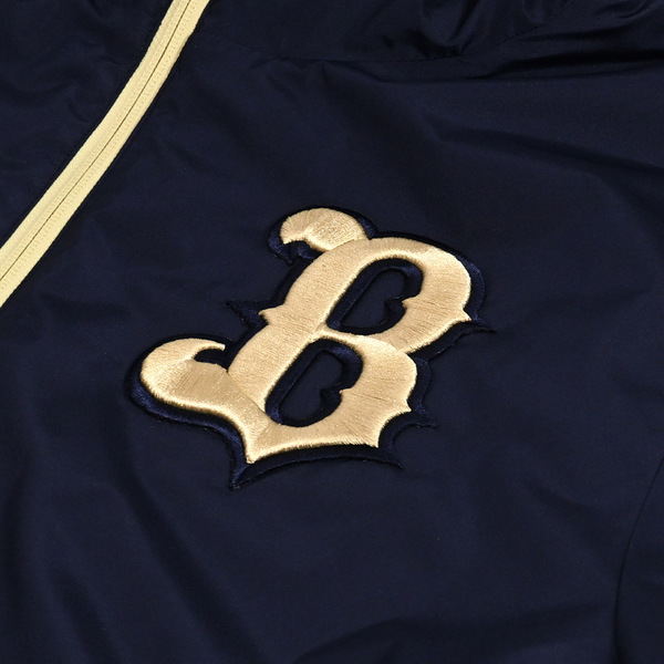 胸に球団ロゴとブランドロゴが並び、NPBマークが右袖に入ったオーセンティックチームウェアです。