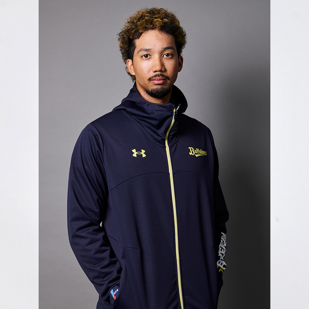 フーディジャケットは、アンダーアーマーのアウターを代表する『ウインターニット 3レイヤー』を使用。