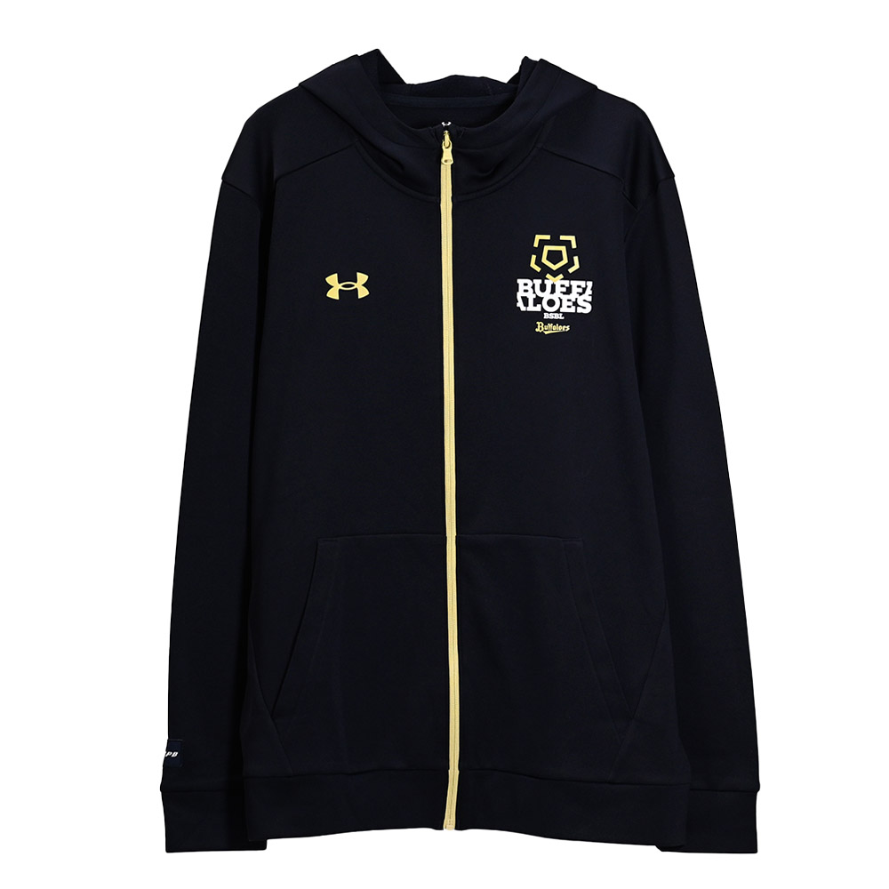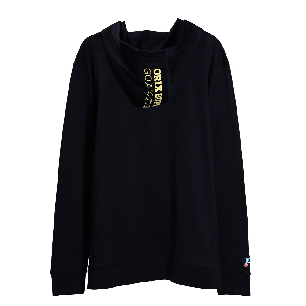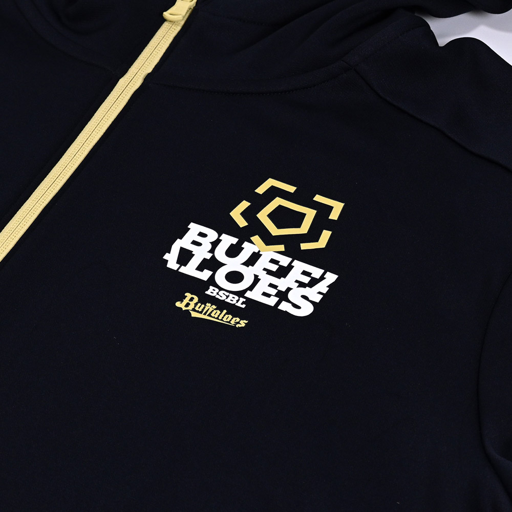 バファローズでの定番、フーディは軽量で通気性とストレッチ性に優れる素材を使用。