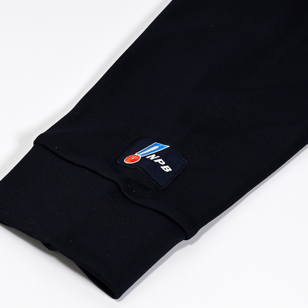 胸にオリジナルロゴとブランドロゴが並び、NPBマークが右袖に入ったオーセンティックチームウェアです。