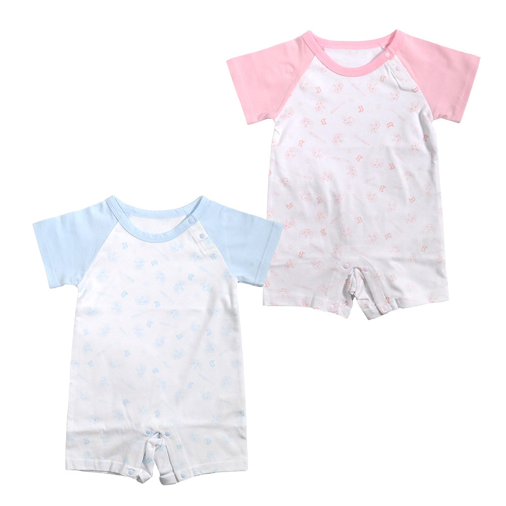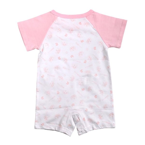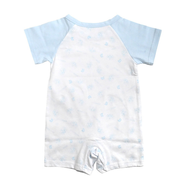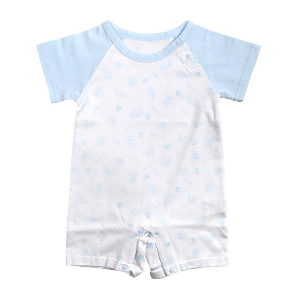 やさしい色合いのパステルカラーがかわいいブルくんとベルちゃんの総柄デザインのロンパースです。