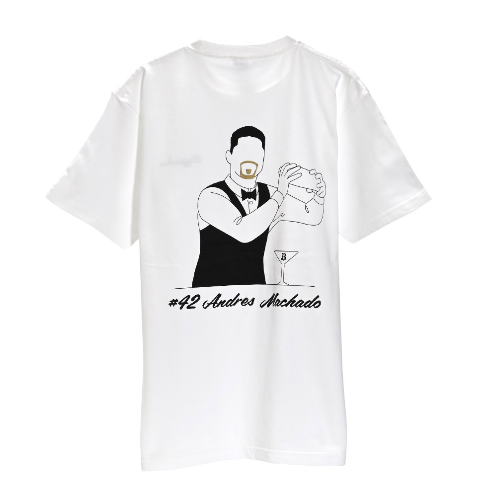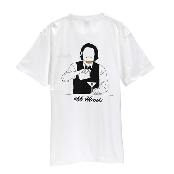 バーテンダーに扮したオリ髭選手のイラストが描かれたTシャツは、このイベントならではのユニークな一着です。