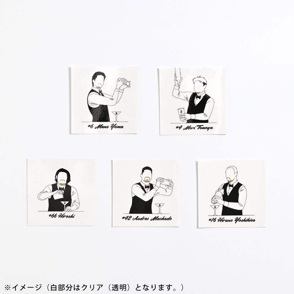 「髭が似合うバーテンダー」をテーマとした「オリ髭投票2025」にて見事トップ5にランクインしたオリ髭選手たちのステッカー。