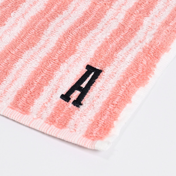 お好みのイニシャルを刺繍したシャーリングタオルハンカチです。