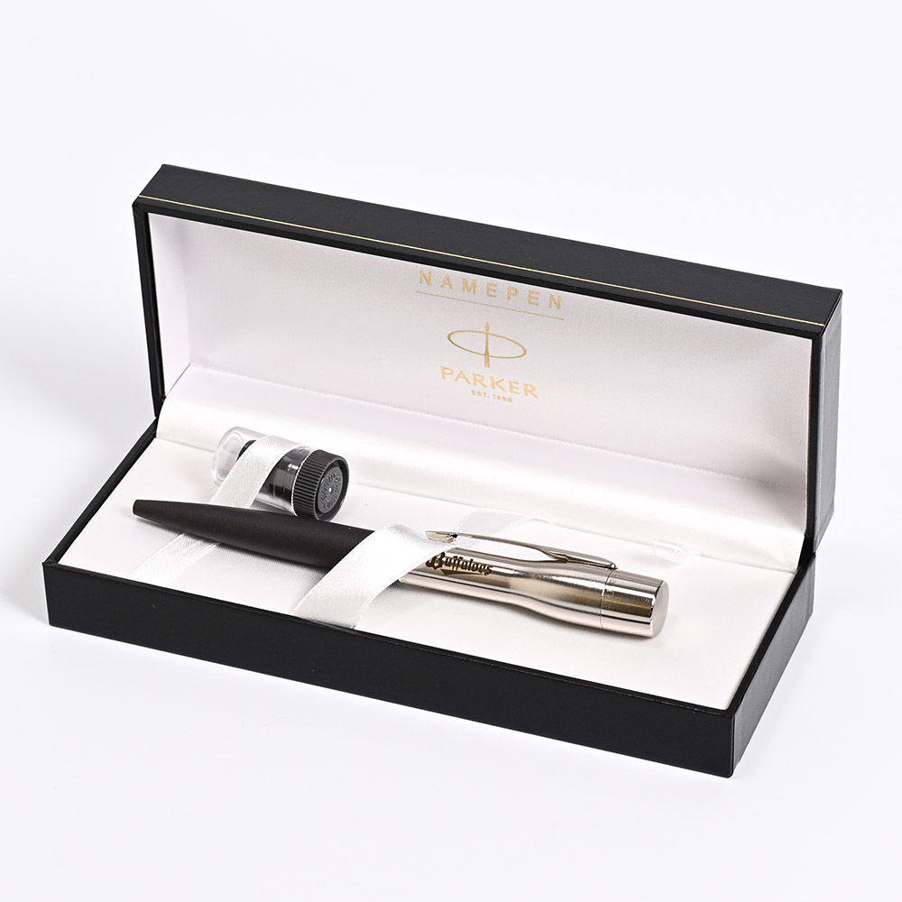 高級筆記具「パーカー」のボールペンに、シヤチハタのネーム印がついたネームペン。