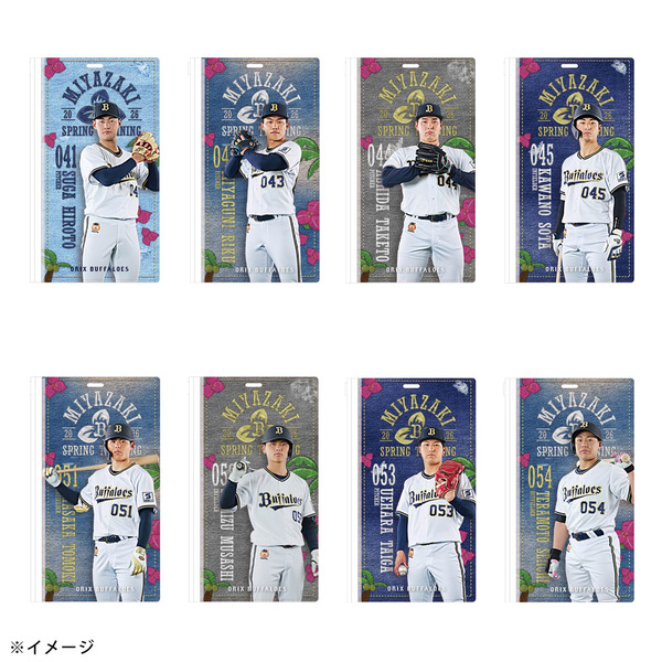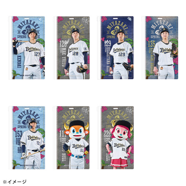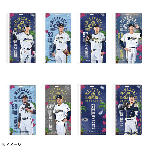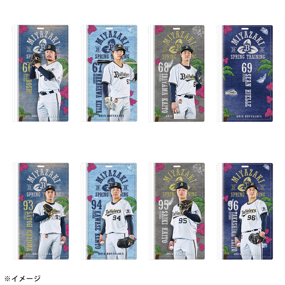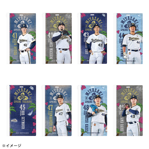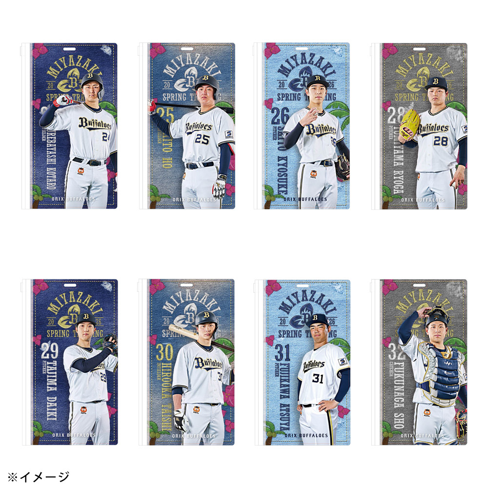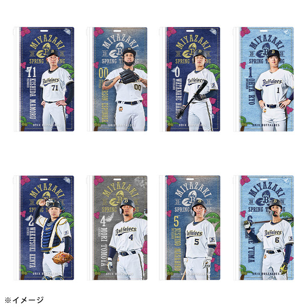 春季キャンプ地のバファローズタウンに並ぶ岸田監督や選手の”のぼりデザイン”を使用したチケットホルダーです。