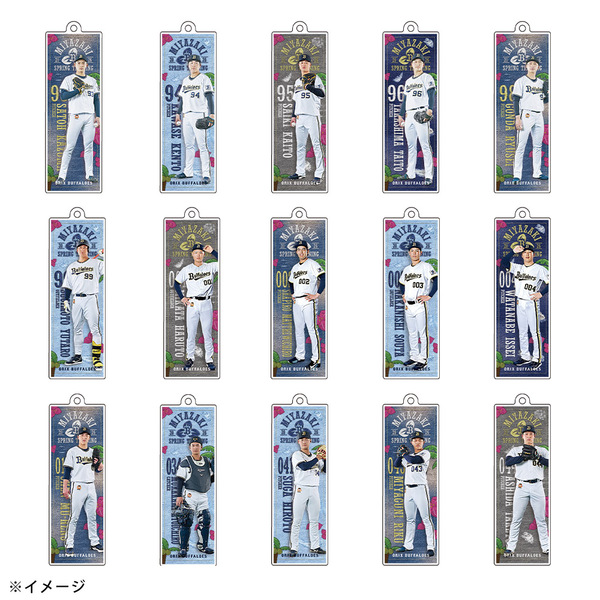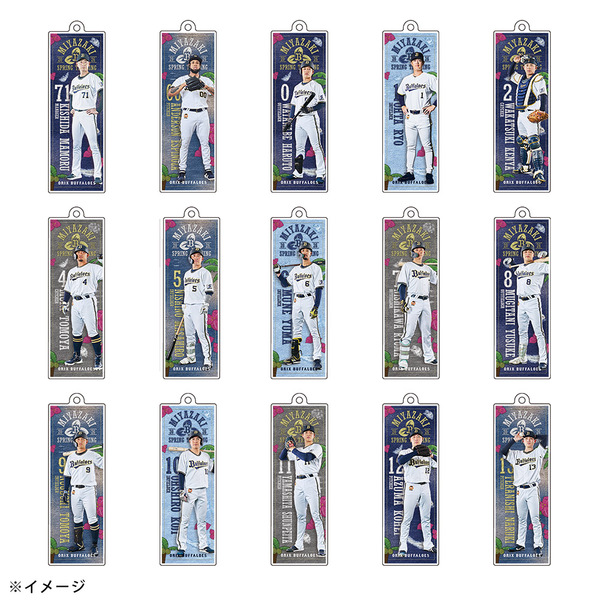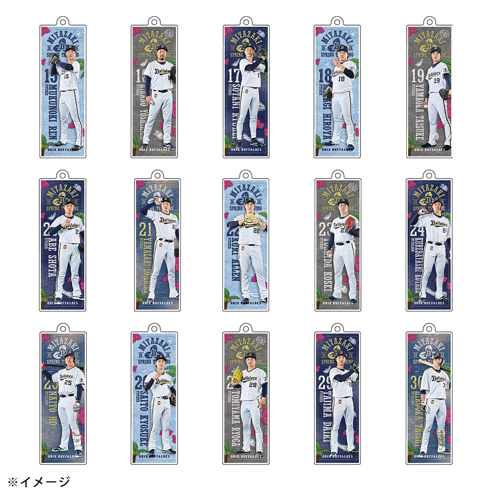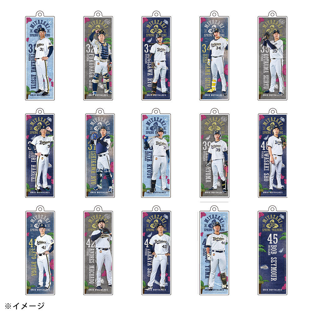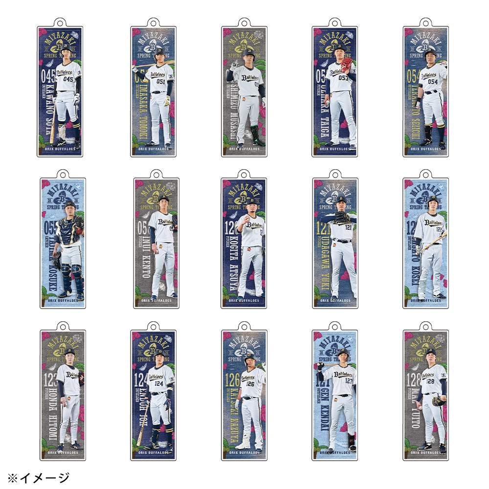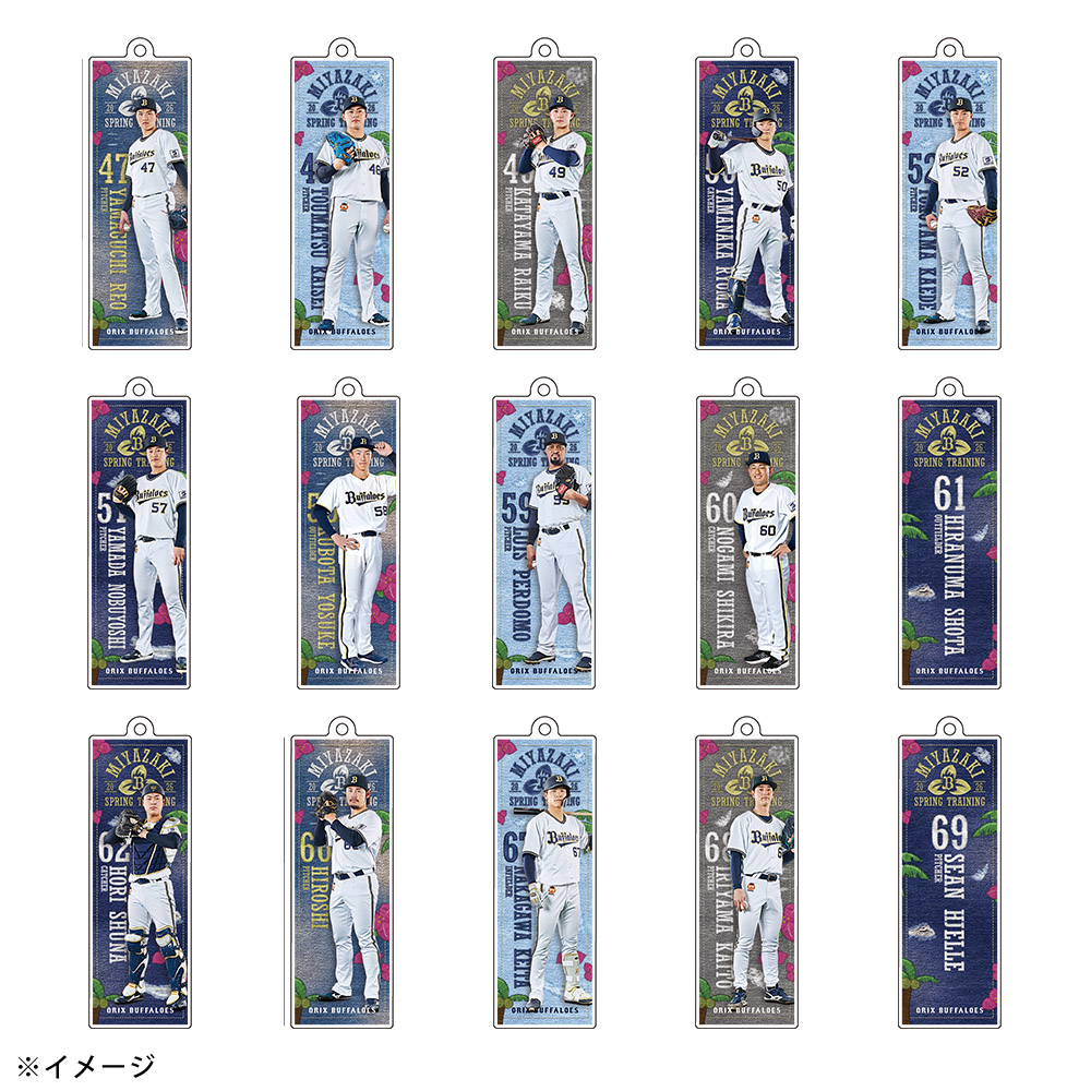春季キャンプ地のバファローズタウンに並ぶ岸田監督や選手の”のぼりデザイン”を使用したアクリルキーホルダーです。