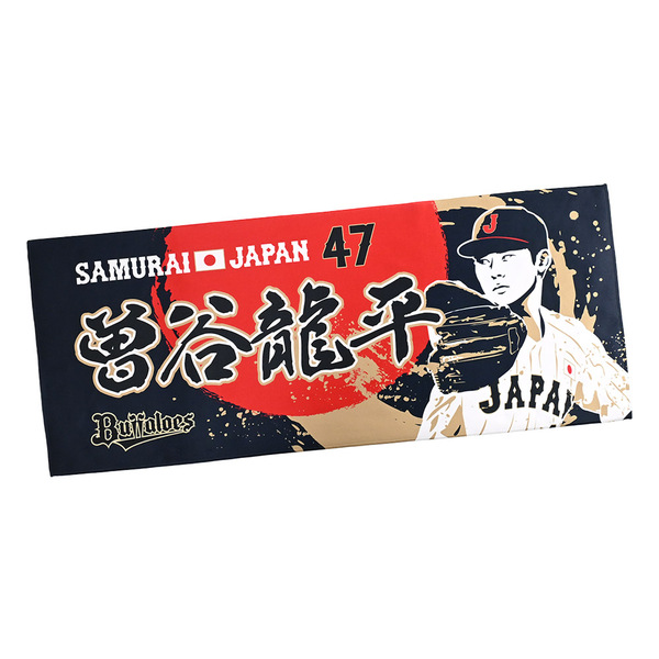 バファローズから野球日本代表「侍ジャパン」に選出された若月健矢選手、宮城大弥投手、曽谷龍平投手のフェイスタオルです。