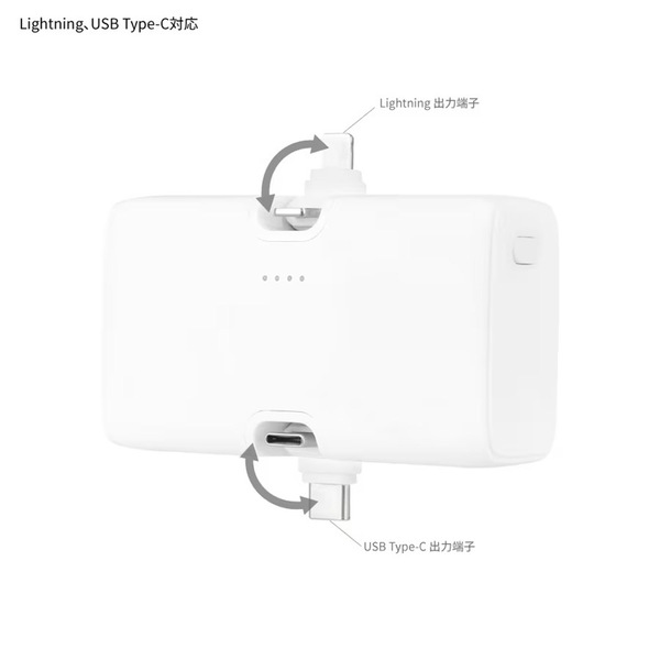 Lightning、USB Type-C端子搭載のリチウムイオン充電器です。PSE規格適合。
